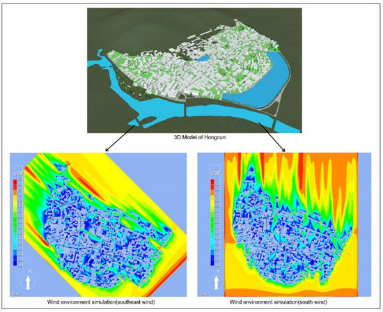 3D model and wind environment simulation of Hongcun.