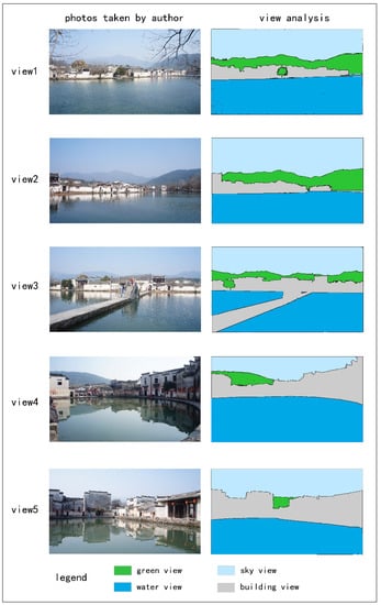 View proportion calculations for five representative perspectives in Hongcun.