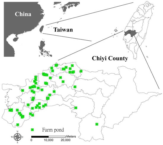 - Chiayi County Government. Report of Assessing Environmental Resource of Farm Ponds in Chiayi County; Chiayi County Government: Chiayi County, Taiwan, 2012.