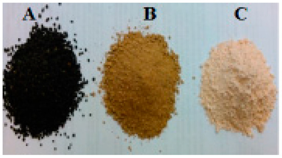 (A) Dry Aluminum (Al)-WTR; (B) Iron (Fe)-WTR; and (C) Calcium (Ca)-WTR.