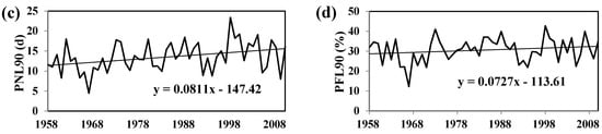 - Li, Z.; Zheng, F.; Liu, W.; Flanagan, D.C. Spatial distribution and temporal trends of extreme temperature and precipitation events on the Loess Plateau of China during 1961–2007. Quat. Int. 2010, 226, 92–100. [Google Scholar] [CrossRef]