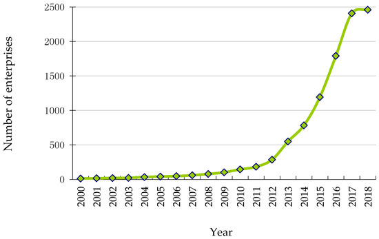 Annual trend of the number of the olive enterprises in China.