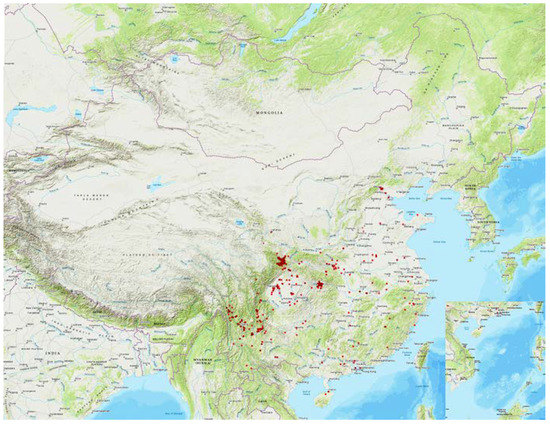 Scatter point map of the olive enterprises in China.