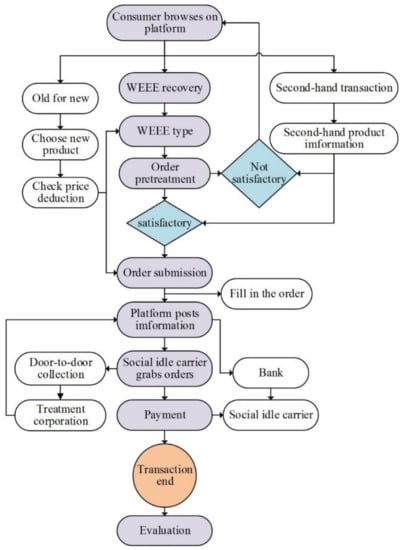 Overall, this mode relying on the Internet connects fragmented idle resources and personnel, provides efficient and low-cost services, to achieve creative development in WEEE collection industry. It does have plenty of outstanding merits but owing to its high degree of integration and subversiveness, some problems emerge in practice, for example, the initial financing of third-party platform [71], mode’s awareness raising campaign in the early stage. According to our investigation, there is no company doing this project over the world, meaning application of this mode in WEEE collection is a challenge but also an opportunity. We could try to create and implement an innovative business pattern on the basis on this mode to better solve problems in the WEEE collection.