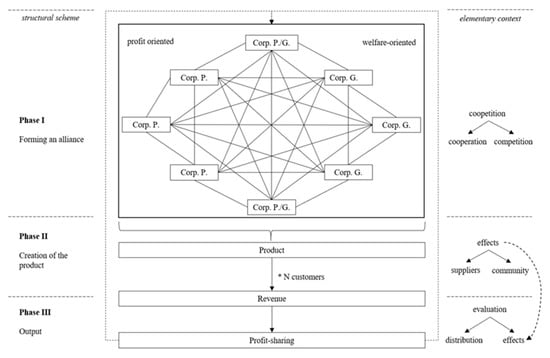 The raw material was read and encoded following the qualitative content analysis of Fenzl and Mayring [72]. Quotes, themes, and paraphrased quotes were identified individually when they seemed to be a considerable point or thought. Moreover, a typology of the participating corporations was compiled, including their legal forms and further key results.