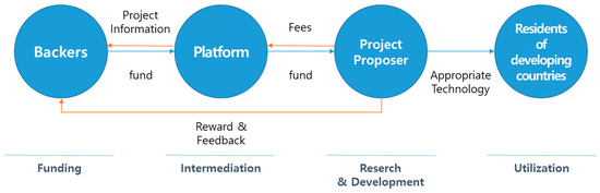 For appropriate technology to be sustainable, it is necessary to utilize mid-to-high grade technology that reflects local need; simultaneously, it must be adequately backed by the provision of stable sources of funding [4,5,7]. Crowdfunding has already seen active use as an alternative means of funding for arts/cultural projects and business startups [9,23]. Crowdfunding represents a promising alternative as it not only addresses the matter of funding but also raises wider awareness about the need for appropriate technology through the interpersonal networks of the participating backers. Crowdfunding is also an advantageous tool in that it can play the role of an OSAT platform, which, through promotion activities, can attract external technologies and diverse external talent necessary for successful implementation of sustainable appropriate technology [25].
