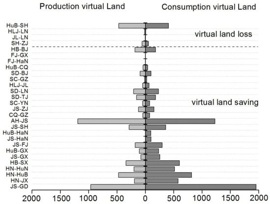 Virtual land was defined as the nontransferable land resources dependent on agricultural trade across regions; in other words, land resources flow with the agricultural products traded from one region to another [1,20,21]. Food trade can strengthen relationships between import countries and export countries, including economy, natural resources, environment, and so on. It is hard to directly estimate how food trade influences natural resources and local environment. Virtual land, as well as its virtual flow, can effectively solve these problems, which can provide some useful information for both countries. Although virtual land is highly important and helpful, there are still some disadvantages. For example, virtual land does not consider differences between two regions, such as land quality, radiation, water, and so on. Therefore, further studies on virtual land are required in the future. By now, two distinctive methods, the environmentally extended input-output analysis model (IOA) and the bottom-up direct trade analysis, are employed to estimate virtual land trade and its associated environmental consequences caused by international trade [21,22,23] and domestic trade [24,25]. It was found that international and national trade can effectively alleviate the land pressures from food production [1,3,26,27,28]. In China, some scholars have also focused on virtual land flows due to food trade. Zhang et al. [1] explored the great potential of international cereal trade for land conservation. Chen & Han [21] studied how international trade influenced virtual land during the period 2002–2010, based on the IOA model. Qiang et al. [3] evaluated and quantified the virtual land flows between China and other countries as well as their land use efficiency. However, most recent studies focused on international virtual land flows, and only a few studies focused on virtual lands and their associated environmental consequences due to domestic food trade [16,24,29]. Furthermore, there are still some gaps in virtual land flows caused by specific cereal trade in China.