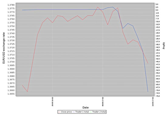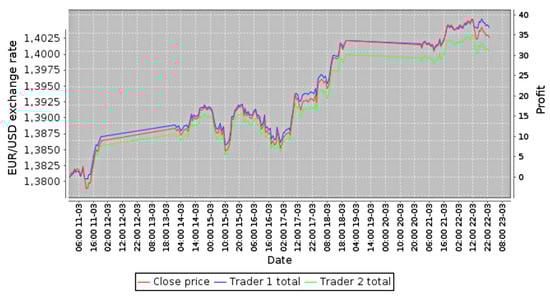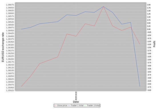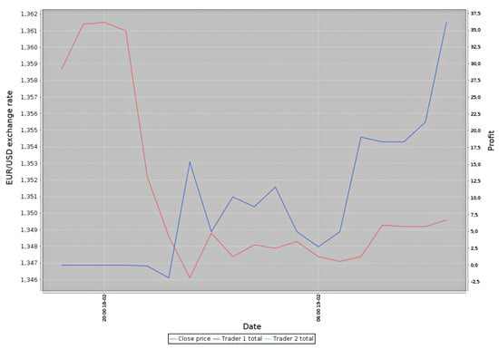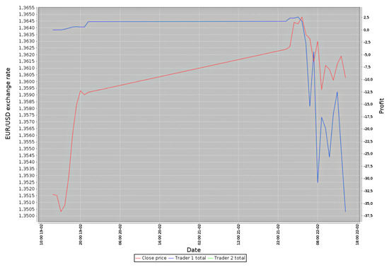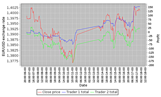 Forex is the most significant market in the world, having a turnover reaching about 4.5 trillion American dollars daily. It is a decentralized market, without a single global entity controlling the turnover. Thanks to this market being open 24 h a day from 11:00 p.m. on Sunday to 10:00 p.m. on Friday (according to Greenwich mean time), it is a fundamental feature in the context of the trading algorithms. In the case of the stock market, there can occur significant differences between the closing price on the given day and the opening price on the next day. Such differences result from events that took place in the period when the stock market was not operating. Such “unexpected” changes, from the algorithm’s point of view (which analyzes only the subsequent values), might introduce a “misleading” factor [1,4].