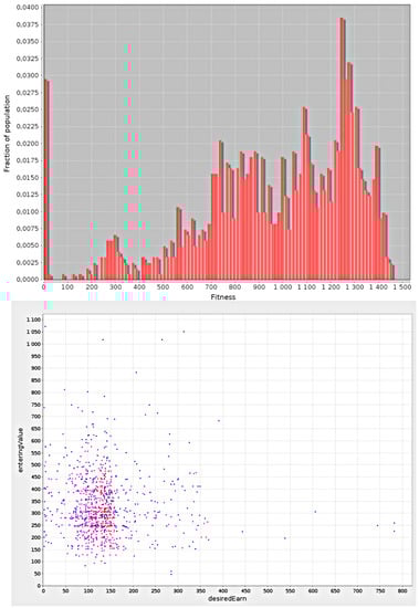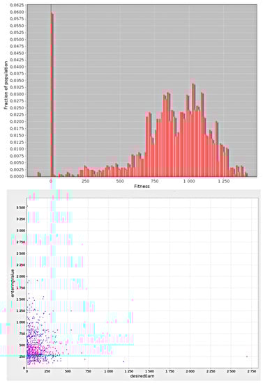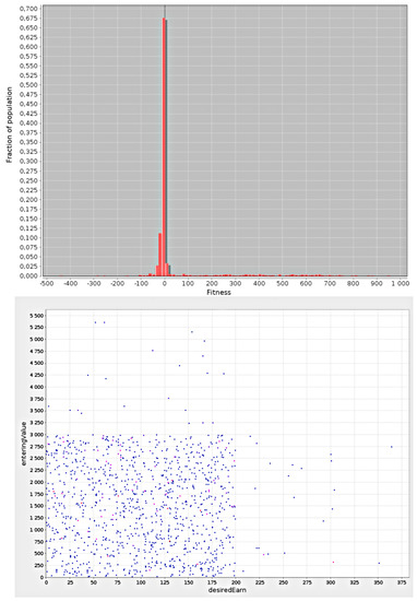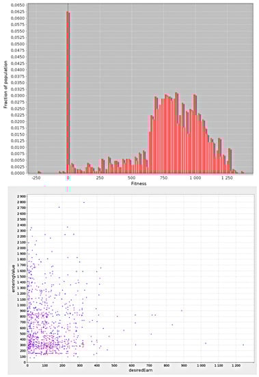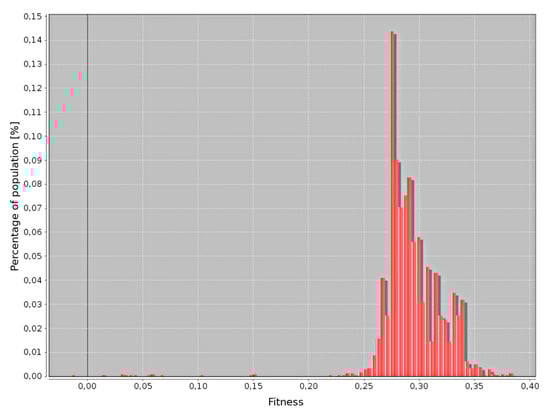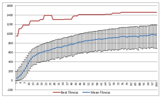 The crossover and mutation operators cause individuals with new solutions encoded within their genotypes to emerge in the population [31,32]. Afterward, an “inspection” of the population is performed, and the “worst” (with the lowest fitness value) individuals are removed. The individuals with the best fitness are selected to form the base population for the next step of the algorithm; the next generation of individuals is established. The rule is generally such that the individuals with the better fitness have a higher chance of being selected for the future generation population. The individuals are selected from the offspring only or the offspring and some part of the population of parents. The latter mechanism is generally better because we do not lose good solutions that are present in the population of parents.