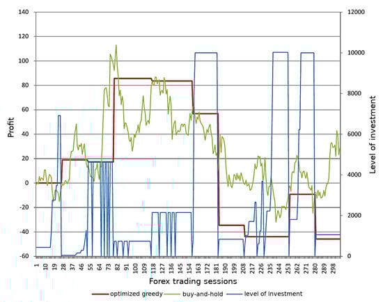 The optimized greedy strategies revealed their potential in generating profit during the trade. Creating a complete investment system that would potentially generate profit with the use of such strategies undoubtedly requires further research. The proposed system was not able to overcome the buy-and-hold strategy during all the trading periods in which the experiments were carried out, but it was able to generate larger profit during quite long periods of time.