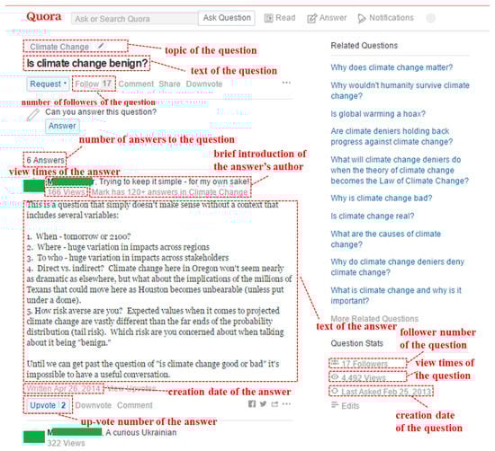 APA StyleJiang, H., Qiang, M., Zhang, D., Wen, Q., Xia, B., & An, N. (2018). Climate Change Communication in an Online Q&A Community: A Case Study of Quora. Sustainability, 10(5), 1509. https://doi.org/10.3390/su10051509