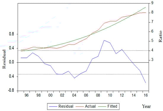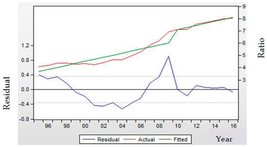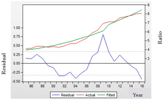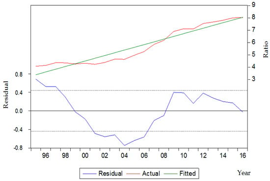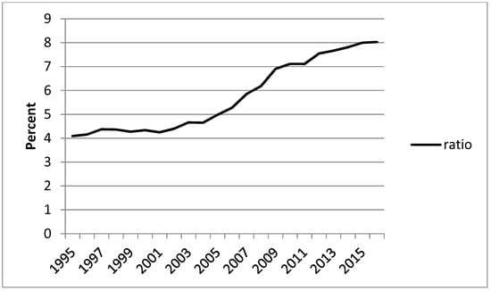 where represents the year. Its evolution from 1995 to 2016 is shown in Figure 2.