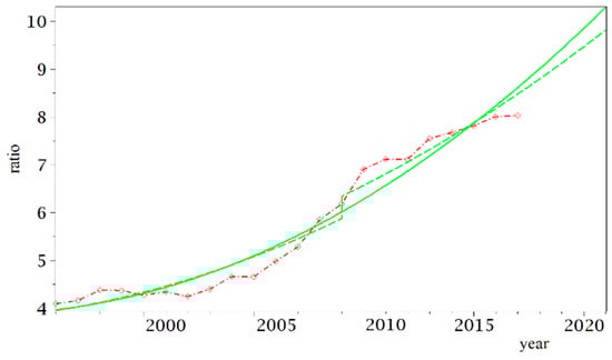 This paper is organized as follows. Section 1 contains the motivation of this study, while the research background and the methods for forecasting are presented briefly in Section 2. In Section 3, we analyze the data and introduce the general regression models used in the paper. Based on such models, in Section 4, the ratio is empirically estimated and predictions of its expected values for the horizon 2020 are obtained. In Section 5, by means of polynomial regression, we obtain estimation for the ratio for four groups of EU countries. In addition, some economic analysis is provided. Finally, in the last section, conclusions of this study are made.