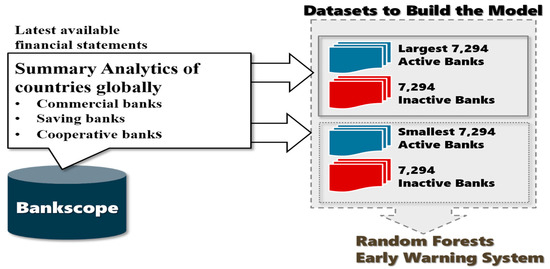 Another important feature of our study is the use of bank-level financial statements to predict bank failure using the random forests EWS built from a large dataset of more than 15,000 banks globally. As previous studies typically used macroeconomic indicators to predict currency and financial crises, the recent literature indicates that the state of bank financial statements can explain differences in performance across banks during financial crises [20,21]. Moreover, previous studies often defined a crisis as an event in which the values of preselected indicators exceed predetermined thresholds. Consequently, the prediction performance significantly depends on the choice of threshold. We define the event of a bank failure as the change in a bank’s status from active to inactive (i.e., bankrupt, in liquidation, or dissolved) based on the information provided by the Bureau Van Dijk Bankscope. By doing so, we wanted to minimize arbitrariness, and thus reduce the possible bias in prediction.