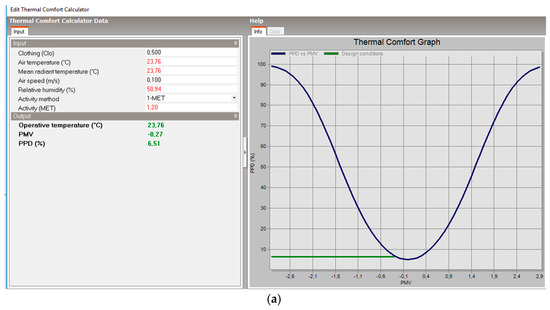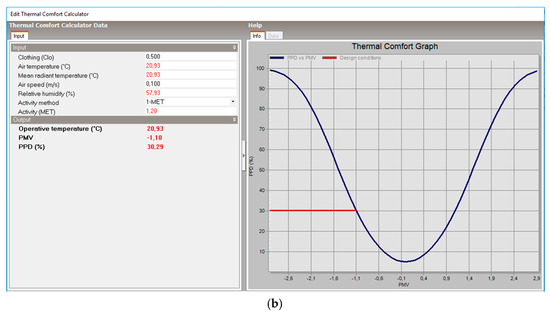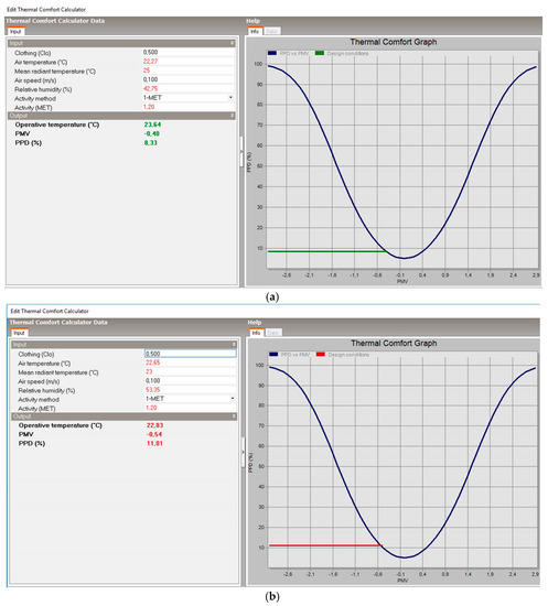 Comparison between comfort curves of the rooms analyzed in configuration T3 (a) room 1: verified; (b) room 2: not verified.
