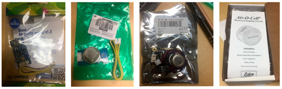From the left: an air quality detection sensor, a formaldehyde detector, a CO2 detector and bio-aerosol cassettes.