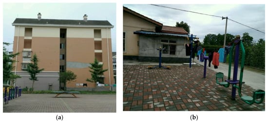 There are four key social risk factors, namely poverty resulting from illnesses, difficulty of satisfying the needs of entertainment, disordered community management, and unclear responsibility of government. These social risks are closely related to economic risk. The central government is promoting social security insurance and medical insurance in rural areas. Yet, the farmers are reluctant to buy these insurances as the premium is increasing rapidly year by year. Moreover, some farmers do not purchase these products, not because they have insufficient funds, but because they are unaware of the clear functions of these insurance products. Therefore, poverty resulting from illness may occur if no insurance is purchased while the savings are limited. In addition, without sufficient public expenditure, the community management is not so good and it is also difficult to satisfy the needs of entertainment. It was easy to find broken external walls, unclear environment, unused sports facilities, and people gathering to play mah-jong, as shown in Figure 2. During the interview, it was found that all CRS were beautiful in the first several years after construction, but deteriorated after several years without sufficient maintenance. Compared with the seven CRS villages, I Village did not identify the significance of disordered community management and difficulty of satisfying the needs of entertainment as there is no such an urgent need for scattered farmers.