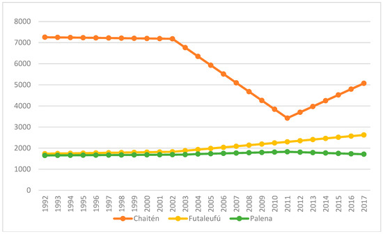 Inhabitants of Chaitén and its neighboring communes (Source: Census 1992, 2002, 2011, 2017).