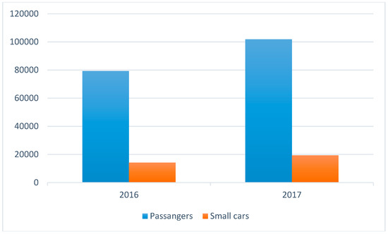 Increase of transported passengers and cars between 2016 and 2017 [44].