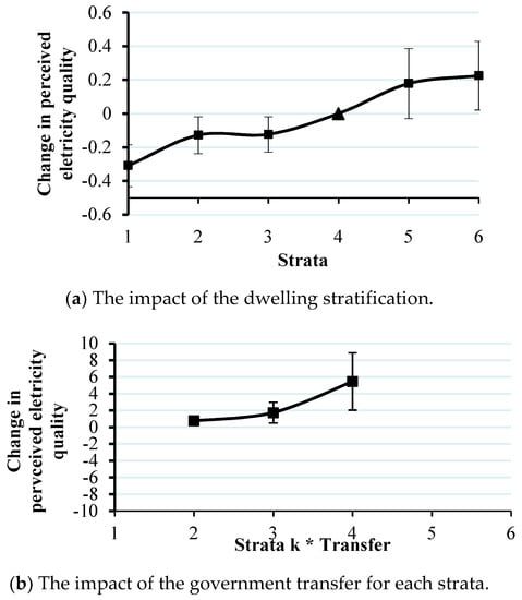In order to demonstrate the magnitude of the effect of dwelling stratification on perceived service quality, further computations are taken on the marginal effects of dwelling stratification and the transfer on the probability that households report one of five quality levels of electricity service (from “very bad” to “very good”).