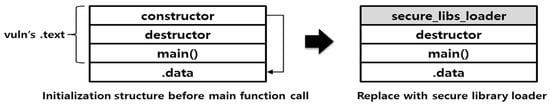 This technique is aimed at minimizing binary modification and indirectly replacing vulnerable functions with safe functions. In other words, it is necessary to modify the constructor in order to load the library of the binary circle, but there is no need to worry about the side-effects, such as destroying the original program without touching other code parts. In addition, since the loaded library is in the form of a shared library, it can be maintained and repaired independently. IoT devices such as smart phones and smart TVs based on Linux are more likely to be applied as targets, therefore flexibility and scalability can be expected.
