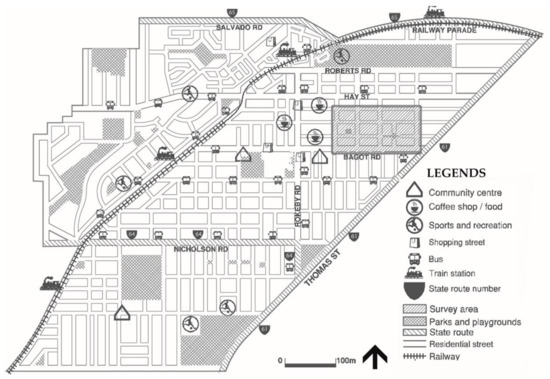 Technological advantages, such as the telephone, Internet, computer, automobile and high-speed mass transit, have made communication easier than ever before. Nevertheless, face-to-face or chance encounters are still more appealing to people than emails or other electronic media [61]. Many argue that physical space is superior to virtual presence [62,63,64]. Therefore, this research explores the potential of physical distance to influence social relations and applies it as an indicator for interactions and community building using one particular case study—a neighbourhood in the Subiaco suburb of Perth, Western Australia. The study creates and explores a typology of places for social interactions based on physical distance.
