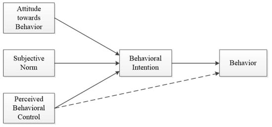 The theory of planned behavior (TPB) was adopted because it was not only the most commonly applied psychology theory in explaining health and pro-environmental behavior [], but was also one of the most commonly referenced theories in the field of green consumerism [,]. Furthermore, the findings from Chan and Lau [] indicated the applicability and universality of TPB in different cultural settings; for instance, consumers’ green purchasing behavior in Chinese and American cultural contexts. Thus, TPB was chosen as the theoretical basis to identify the key factors that affect construction practitioners’ decisions with respect to purchasing GH in China.