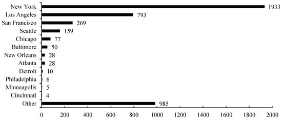 As jurisdiction area of FDA coding of a few refusal cases in the original dataset are missing, unidentifiable and fuzzy, we analyzed the refusal data that can be identified the city name of the U.S. and classified the rest to “other” group. Figure 2 shows that China’s food exported to the U.S. were mainly rejected in New York and Los Angeles and the total refusal number of these two cities was 2726 (67.36%), New York ranked the first in terms of the refusal number.