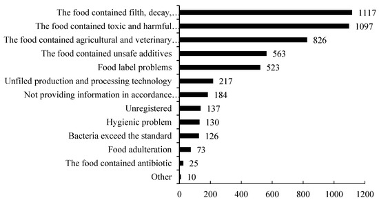 The United States (U.S.), the European Union, and Japan are the major trading countries and regions of China’s export food. According to the report of the General Administration of Quality Supervision, Inspection and Quarantine of the People’s Republic of China, the United States, the European Union, and Japan have made 340, 228, and 119 Technical Barriers to Trade (TBT) notifications, 184, 245, and 109 sanitary and phytosanitary measure (SPS) notifications, respectively since 2001. An important reason why China’s export food has been frequently rejected is the strict food safety standards in developed countries [2,3,4,5,6]). However, food safety standards are also a good opportunity for developing countries to improve their export food quality, market maturity, trade competitiveness, and export performance [7,8]. Some scholars analyzed the obstacles to China’s food export to different countries. Yamada and Sui identified the causes associated with the rejection of Chinese frozen vegetables [9]. Mori et al. analyzed the underlying reasons for port rejections of live and processed eels imported from China to Japan by using publicly available data [10]. Using the information on rejections with Chinese firm-level export data, Beestermöller et al. examined the impact of European borders inspections on agri-food exports [11]. Some scholars also analyzed the import refusal data of the U.S. [12,13], but there are relatively few studies aimed at the Chinese export food rejection from the United States, especially long-term studies involving large volumes of data. By comparing the data of rejection for China’s food exporting to the U.S., European Union, Japan, South Korea, and others, the most frequent cases occurred in the United States [14]. Therefore, it is necessary to make a systematic study to analyze the data of rejected food which export from China to the U.S.