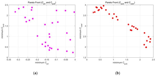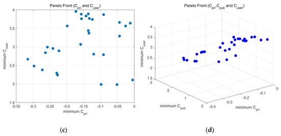Model 2 has two objectives: the minimum cost of the private sector and the public sector, as expressed in equations (18) and (19). The cost of single user p is fixed in this scenario. Constraints are the same as with Model 1.