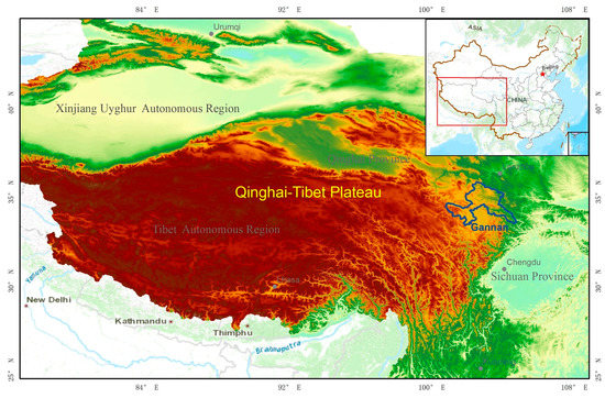 Location of the Qinghai–Tibet Plateau and the studied area of Gannan.
