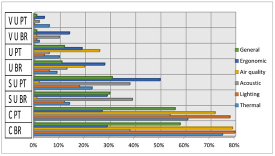Table 6 and Figure 1 show the differences and similarities between the percentages of environmental comfort perceived by the students of the schools of Juiz de Fora (Brazil) and Guimarães.
