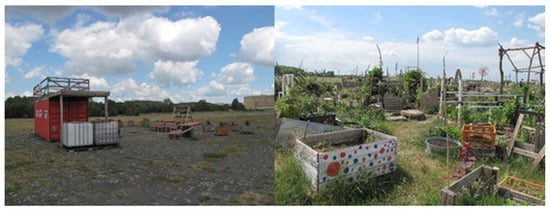 These plans were opposed by the activist group “100% Tempelhofer Feld” who advocated lack of trust towards the local government and developers, arguing that the park was best left as it was. They forced a local referendum (held in 2014) in which, with 64.3% votes, citizens decided to affirm the results of interim land use, accepting the current state and the bottom-up development. Community gardens, racing tracks on the runways, protected areas for rare bird nesting, temporary bars and small-scale makeshift architecture became legal and welcomed. In 2017, Tempelhofer Feld was seen as one of the best examples of truly democratic, participatory public spaces in the world. Architect Martin Rein-Cano claims that it is one of the best parks in the world and that no landscape architect could better design a space for such an array of activities and an open place that makes everybody feel like they are welcomed and can do something for themselves []. These low-budget, spontaneous and informal arrangements are recognized as distinctive for the process which became a valid strategy for the Tempelhofer Feld Park (Figure 2).