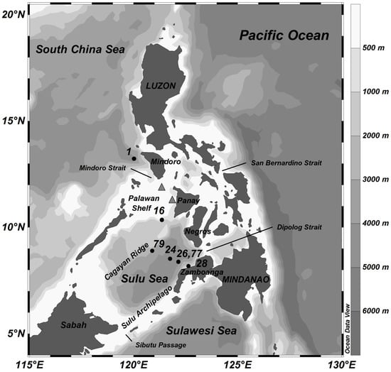 - Gordon, A.L.; Sprintall, J.; Ffield, A. Regional oceanography of the Philippine archipelago. Oceanography 2011, 24, 14–27. [Google Scholar] [CrossRef]