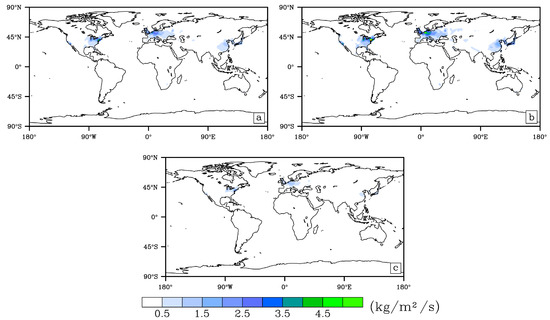 It should be mentioned that these two experiments fully include the land and ocean carbon cycles. So we have to convert the annual total global carbon emissions to a monthly gridded CO2 flux (units: kg·m−2·s−1) using the method from Yang et al. [27,28]. The gridded NDC and NDC-NA-NT scenarios have the same spatial and temporal distribution, with representative concentration pathways (RCPs).