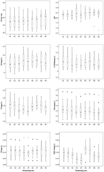 3.2. Temporal and Spatial Variations of Water Quality among Site Groups
