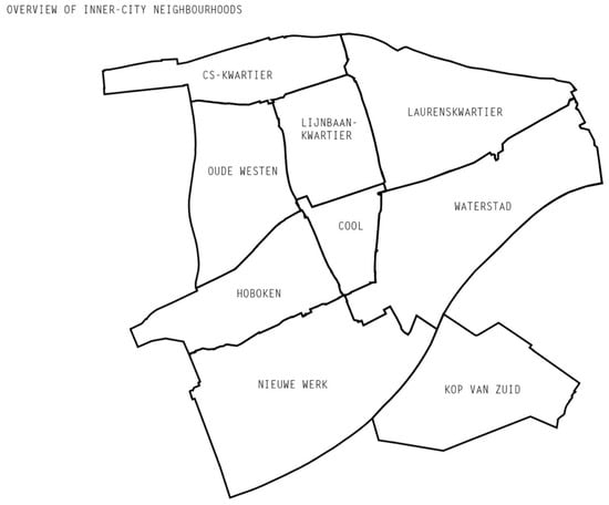 - Tillie, N.; Dudok, I.; Pol, P.M.J.; Boot, L.; van der Heijden, R. Quality of life in Remaking Rotterdam. In Remaking Post Industrial Cities; Routledge: Abingdon-on-Thames, UK, 2016. [Google Scholar]