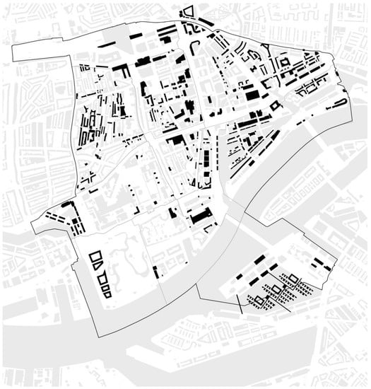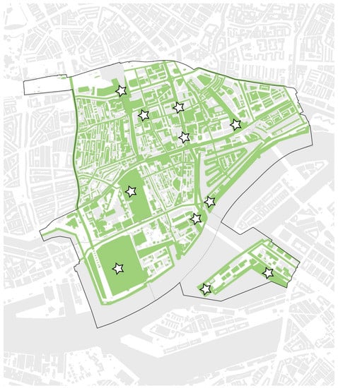 Overview of the nine neighbourhoods studied for densification and greening (image by Doepel Strijkers Architects, Rotterdam).