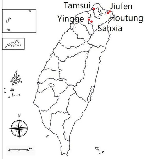 The researchers selected the top five popular tourism sites that can be accessed by public transportation in New Taipei City, which are Tamsui, Jiufen, Houtung, Yingge, and Sanxia (Figure 1). The participants were 18 years or older and had travelled to these areas between March and April of 2013.