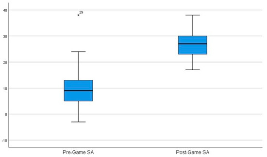 In summary, the post-game SART results reported significantly higher familiarity effects on all the four dependent variables [overall SA, demand on attentional resources (D), supply of attentional resources (A), and the understanding of the situation that they face at that particular moment (U)], than the pre-game SART results.