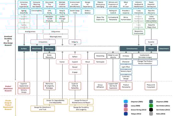 | Design for Durability and Longevity | Bakker et al. [10]; Great recovery project [12]; Ellen Macarthur Foundation [20]; Ljungberg [21]; Mugge, Schoormans & Schifferstein [19]; Van Nes and Cramer [17] |