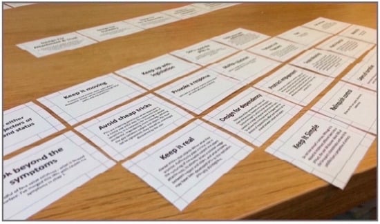 - Martin, B.; Hanington, B. Universal Methods of Design: 100 Ways to Research Complex Problems, Develop Innovative Ideas, and Design Effective Solutions; Rockport Publishers: Beverly, MA, USA, 2012. [Google Scholar]