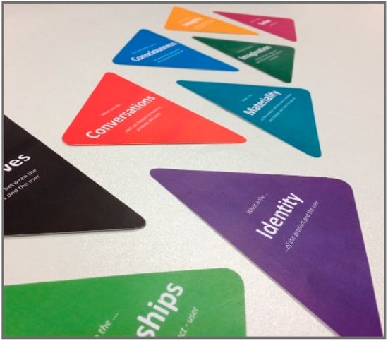 - Casais, M.; Mugge, R.; Desmet, P.M.A. Using Symbolic Meaning as a Means to Design for Happiness: The Development of a Card Set for Designers. In Proceedings of the 50th Anniversary Conference on Design Research Society (DRS 2016), Brighton, UK, 28–30 June 2016. [Google Scholar]