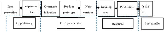 The proposed process model of sustainable innovative academic entrepreneurship (as shown in Figure 1) includes eight phases: idea generation, developing the experimental prototype, deciding to commercialize, creating the product prototypes, creating and developing the new venture, producing the product, and generating sales.