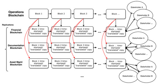 This framework proposes several basic chain pipelines, and is flexible to adapt to several different applications while following the same concept. The operation steps would generate a block with a hash, connecting into one main blockchain, which would have time stamped copies in real time. However, its content would be “translated” to other types of information related to the operations, such as financial information, asset management data, documentation, and certification for audits, vendors, and customers, and other possible pipelines. These would work based on the double-booking accounting system, only in this case with several record entries, as a third, a fourth and so on, pertinent to each block. Only the required stakeholders would then gain permission to access the relevant blockchain. Thus, the information would be protected while making it accessible to the parties that need it, and controlled by the company in charge. Since this theoretical concept is still not applied in practice, it does not have a measuring model. Future studies may develop measures and deploy the framework on an open-source code platform. Then, a more complex structure can be developed and applied in case studies with a relative lower cost than creating coding from scratch. This model may still require extra technology, such as for instance to enable the information “translation” from the main ledger to its replications, which also requires further research. Ideally, it would then connect to other technologies, such as the IoT for asset management, data for digital twins and artificial intelligence learning, and others. This will contribute to the creation of a sustainable supply chain.