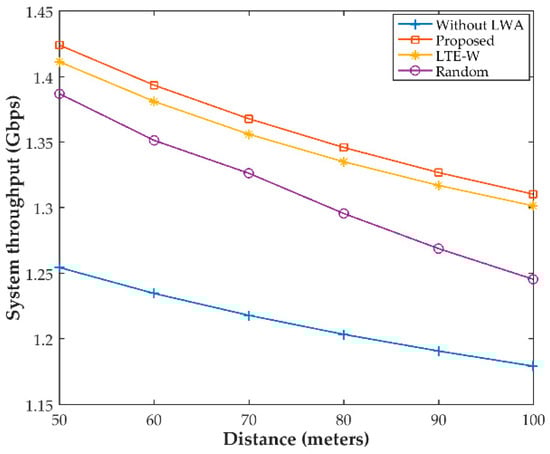 System throughput with variable distance.