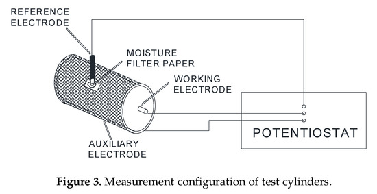 Scheme of concrete test cylinder used during corrosion tests [20].