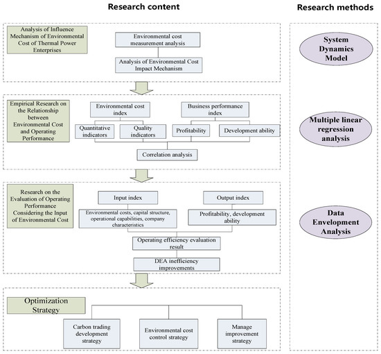 30]. However, this paper analyzes the DEA efficiency of business performance, and focuses on the impact of the input cost of environmental costs on business performance. It was found that the lack of input in major factors, such as environmental costs and financial leverage, causes the output elements of the power generation enterprises to be insufficient. In addition, in the field of thermal power companies’ business performance improvement and sustainable development optimization strategies, the existing literature mainly seeks corporate performance improvement strategies from the perspective of the main business [