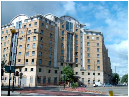 The site selected for this study is a student residence hall called “McLaren House” located at the Southwark campus of London South Bank University (LSBU, London, UK) in central London, UK. McLaren House has over 600 non-smoking rooms and is occupied throughout the year. Each room has a window that could be opened fully for the ventilation purpose. It is a naturally ventilated building with no cooling plant installed. Opened in the 1996, the building has a total Gross Internal Area (GIA) of 14,740 m2. Electricity to the building is supplied through a switch room in the basement. The boiler plant room is located on the 10th floor and comprises 3 × 225 kW gas fired space heating ‘Viessmann’ boilers and two gas fired hot water heaters. The site is controlled by a Satchwell (now Schneider Electric) Sigma Building Management System (BMS). Figure 3 shows a front view of McLaren House.