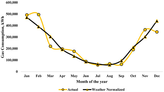 This could be attributed to the fact that these three months were colder than those in previous years. The profiles suggest that during summer months, the actual and normalized gas consumption were almost equal.